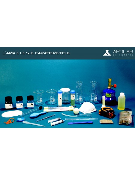 Il kit permette lo studio dell'aria e delle sue proprietà fondamentali. Le esperienze sono di facile eseguibilità e permetteranno agli studenti di apprendere il concetto di aria (i parametri chimico-fisici che la caratterizzano), le cause fondamentali da cui dipendono, i fenomeni atmosferici e l'inquinamento