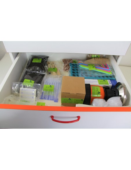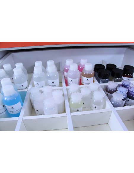 Le configurazioni sono dotate di tutta la vetreria, reagenti e accessori laboratoriali necessari per lo svolgimento delle attività (Beacher, bacchette, reattivi ecc...)